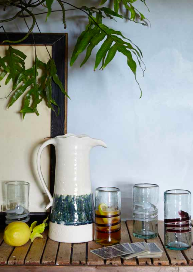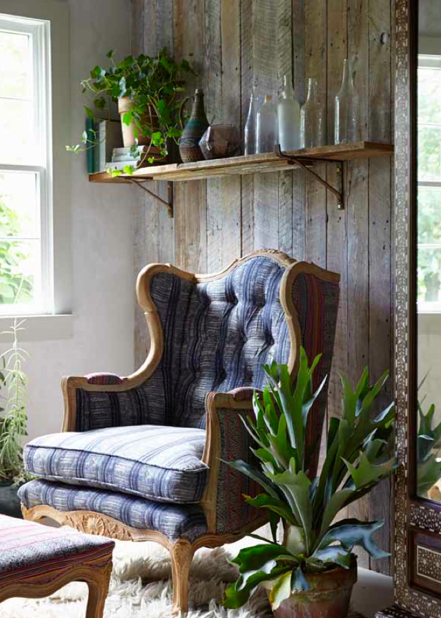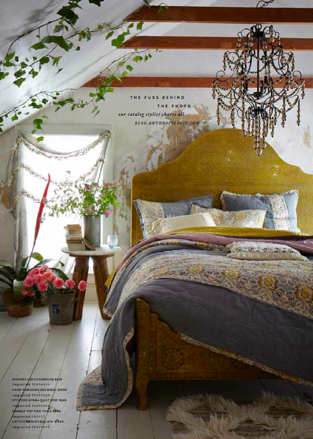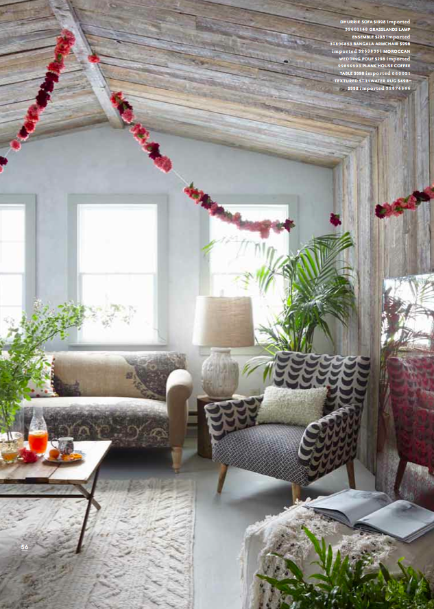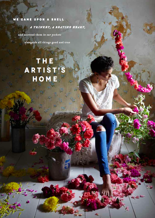 Not only that. When asked what her favorite space she’s ever styled is, Anthro’s Kim Ficaro had this to say: “To be totally honest, after 10 years of doing this, my most favorite space was on this shoot! The first week we shot in a small house upstate. We made garlands of carnations—the most underrated flowers—and hung them in the attic rooms, which had beautiful peeling wallpaper. The downstairs room of the house was a pale grey and we created a living room that you could stay in all day, using lush plants and the carnation garlands.”