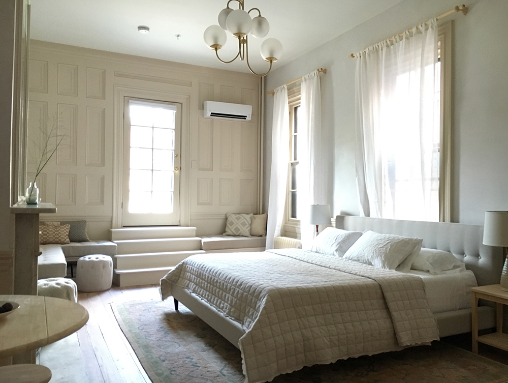 We fell in love with the high ceilings, the old floors and moldings, and the private roof deck instantly. The rest looked like a fancy grandmother’s pied-à-terre. We thought it would take a few weeks–a month, tops–to whip the place into shape and get it up on Airbnb with plenty of time to spare before the summer travel season and DNC kicked off. Instead, the listing went live on July 25th, the first day of the DNC.