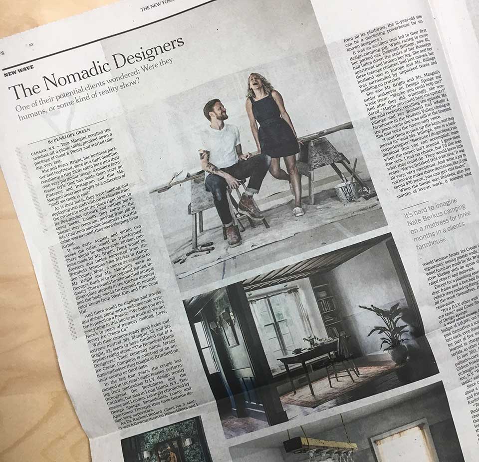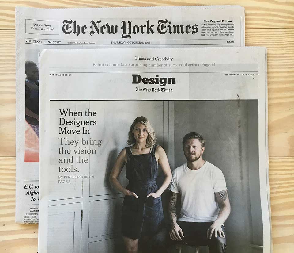 As I sit here writing this, not even two full weeks have gone by since the article appeared in print. It feels like months have passed. Even as they were sending up photographers on different days and Penelope Green herself to our late-summer job in Canaan, NY, I never would have believed that The New York Times would give us a section cover, a full spread inside, and even a tiny little photo of our faces on the front front page. Not until we had a copy in our hands. What a feeling!