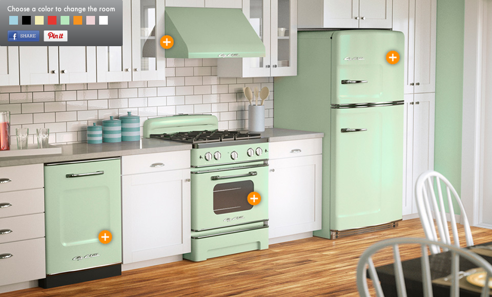 For some reason, at some point in the last few decades, some idiot decided that appliances should no longer be available in custom colors. And after seeing a bunch of grandma-house atrocities while house hunting in Philly yesterday, I can’t blame him (yeah, it was definitely a dude). But something tells me all the major appliance manufacturers just got together one day and decided over stiff cocktails, the fewer options the “better” (read: cheaper). And so began the reign of stainless, black, and white. Not a lot of fun for us designers!