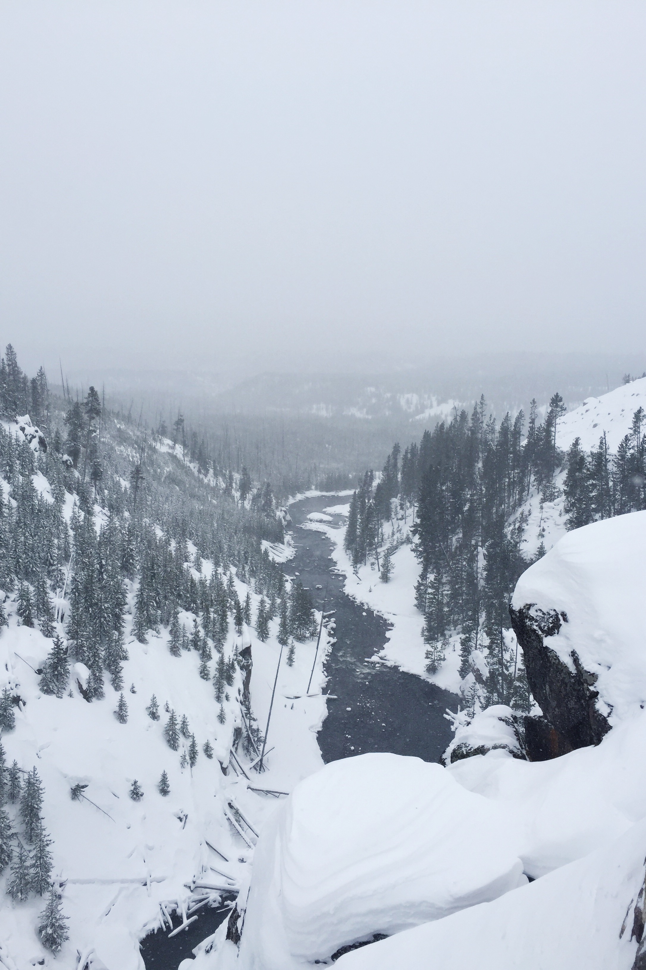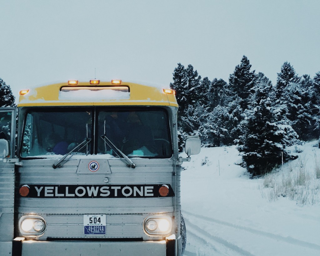 My mom and I were lucky enough to spend Christmas week in Yellowstone. It was the best. We rode all over the park in old 70s Bombardiers that would make Wes Anderson jealous. We went of a night tour of Fountain Paint Pots under the stars. We saw five wolves, a coyote, two otters playing together in an ice cold river (there was literally ice floating past them), and more elk and bison than we could count.