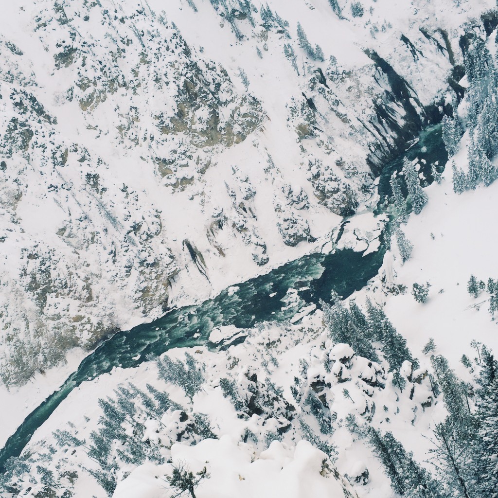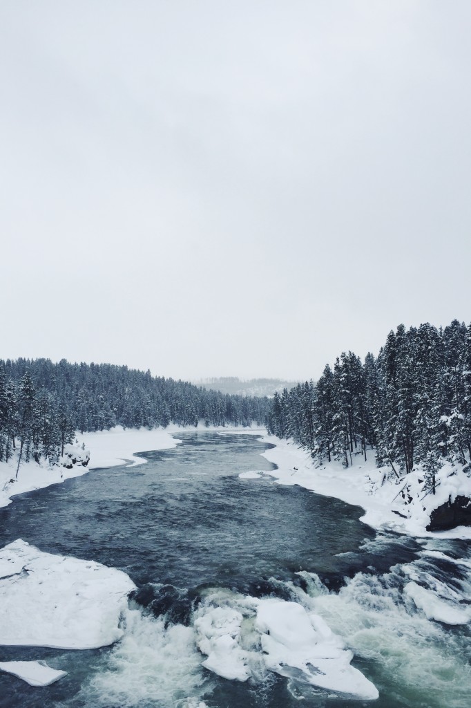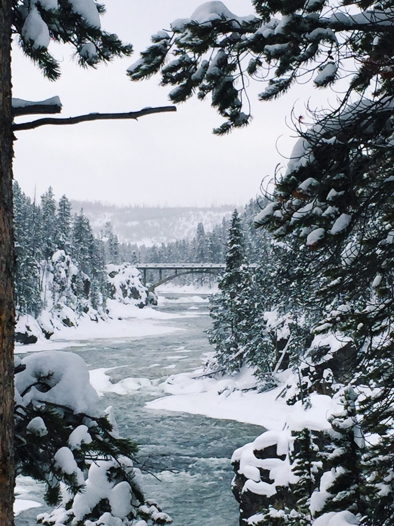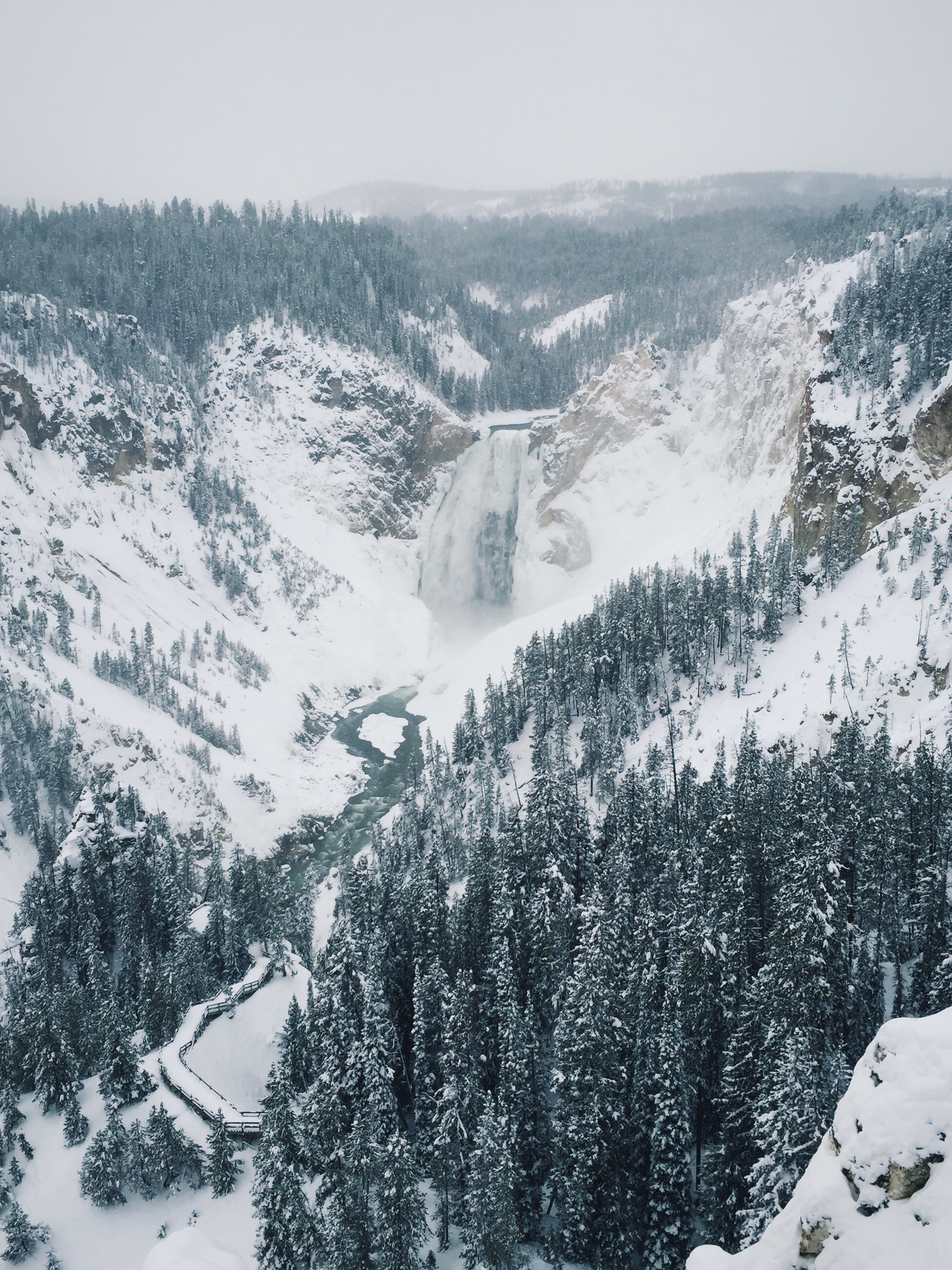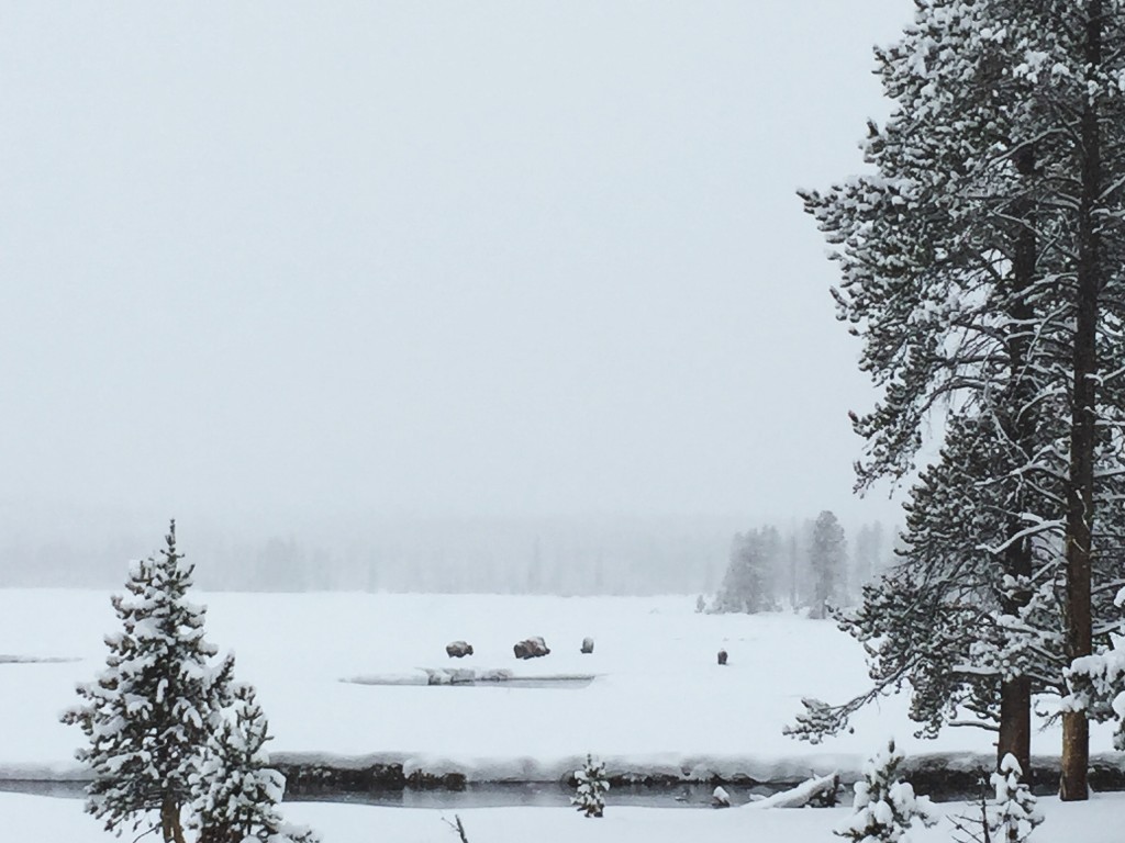 My mom and I were lucky enough to spend Christmas week in Yellowstone. It was the best. We rode all over the park in old 70s Bombardiers that would make Wes Anderson jealous. We went of a night tour of Fountain Paint Pots under the stars. We saw five wolves, a coyote, two otters playing together in an ice cold river (there was literally ice floating past them), and more elk and bison than we could count.