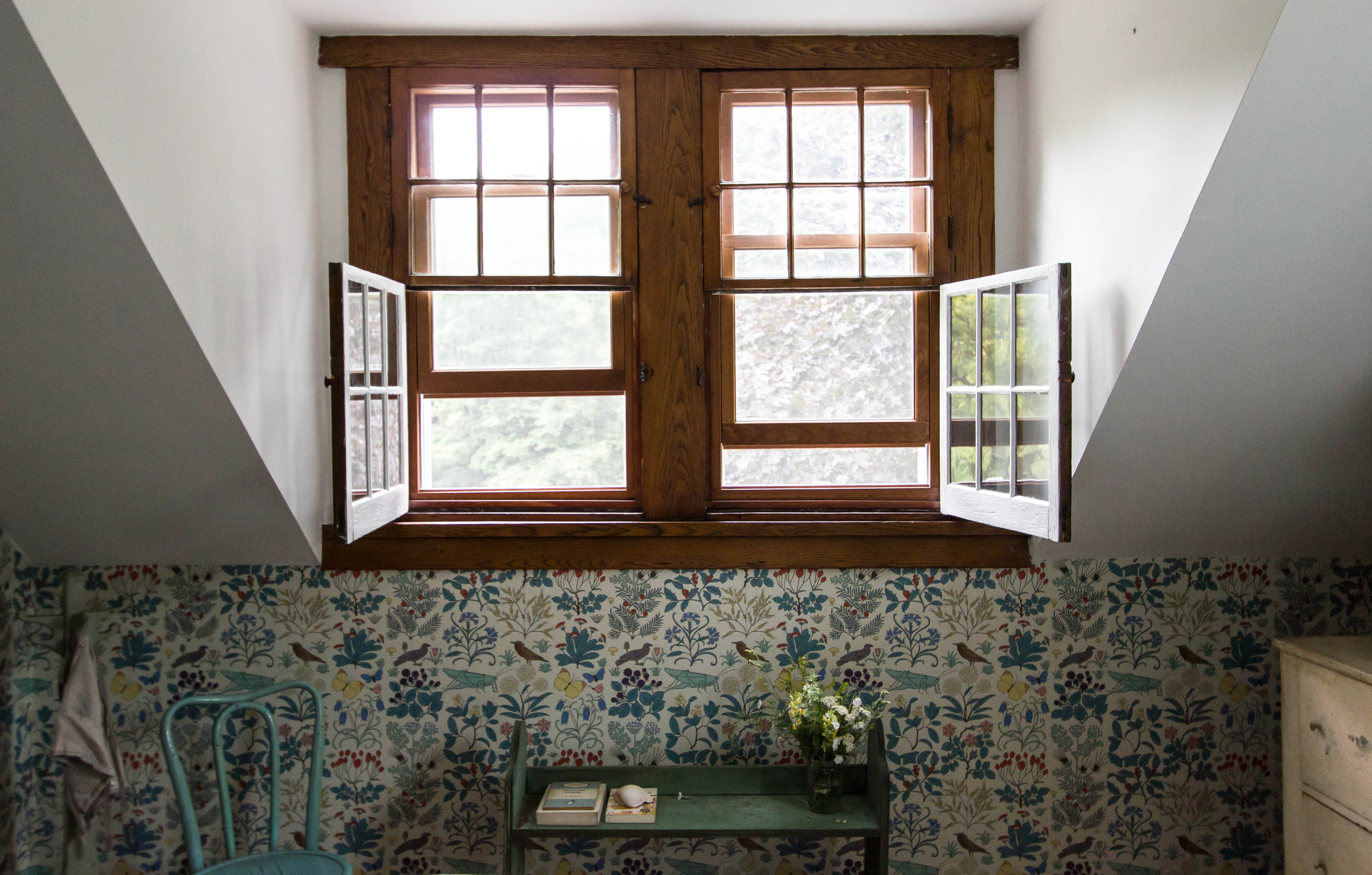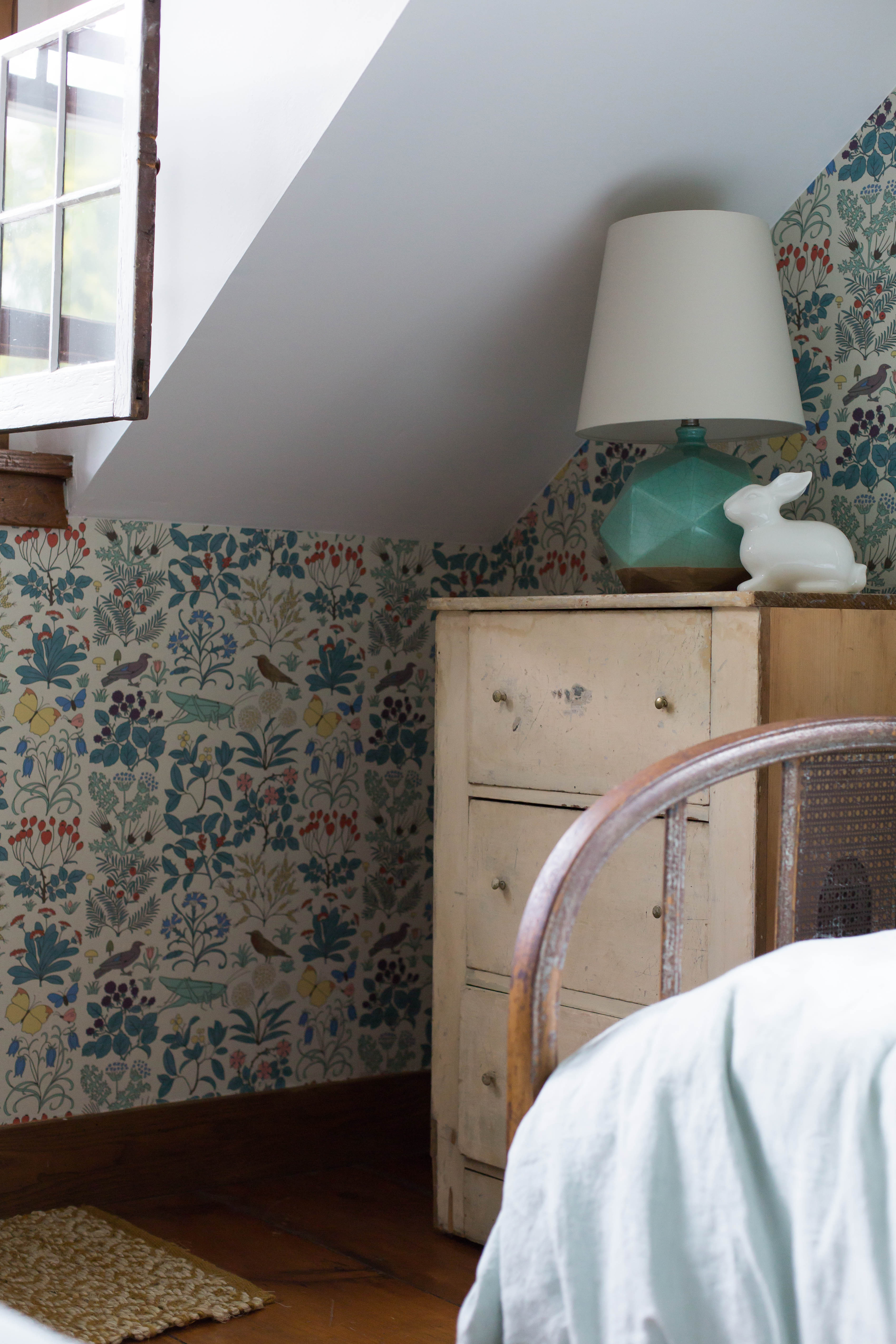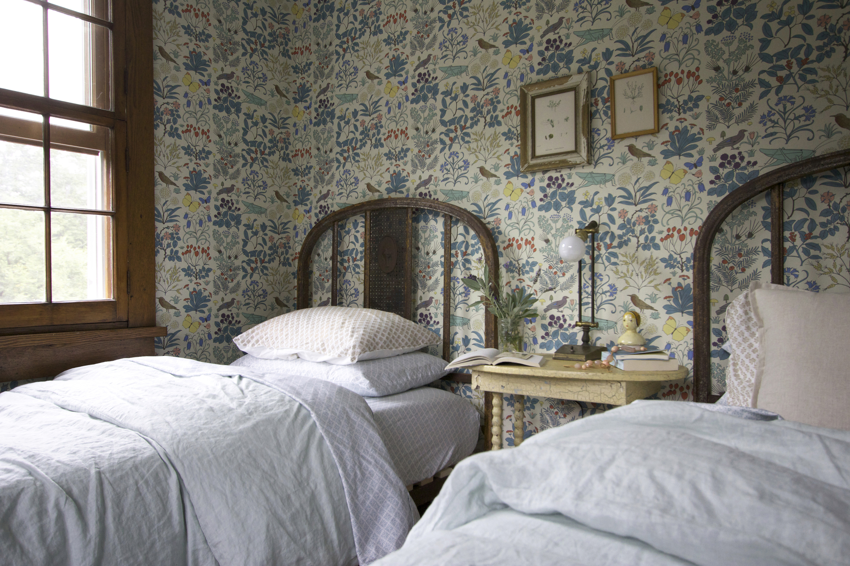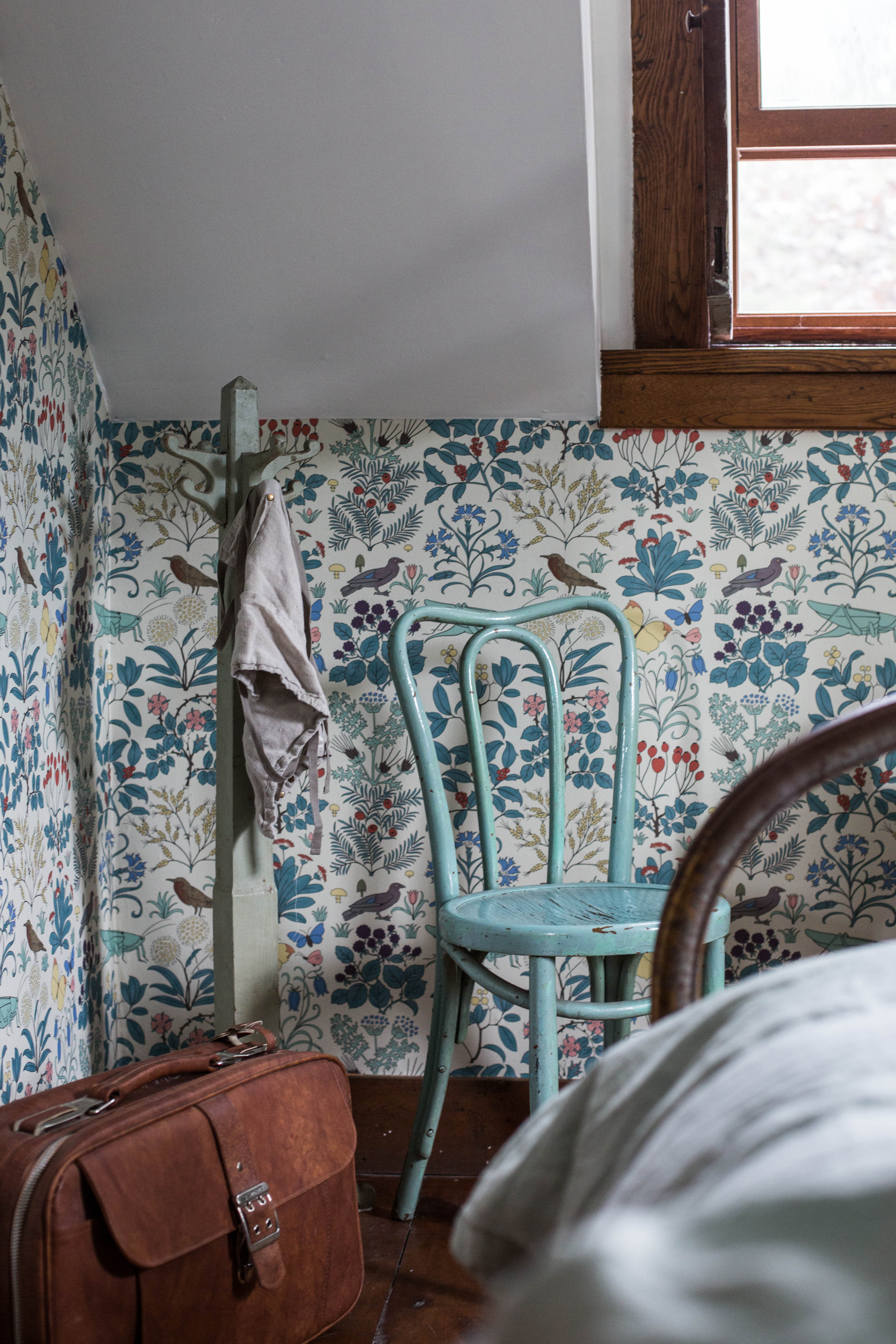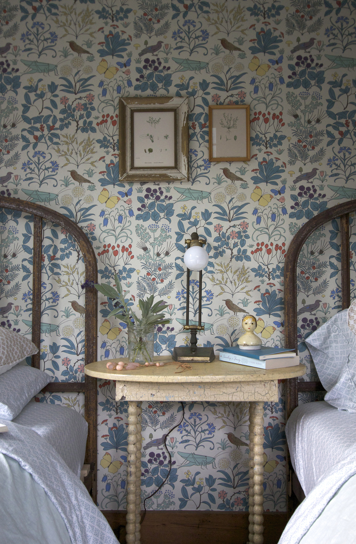 Beautiful photos of a beautiful house. Does anyone where the wallpaper with flower, birds and crickets comes from?