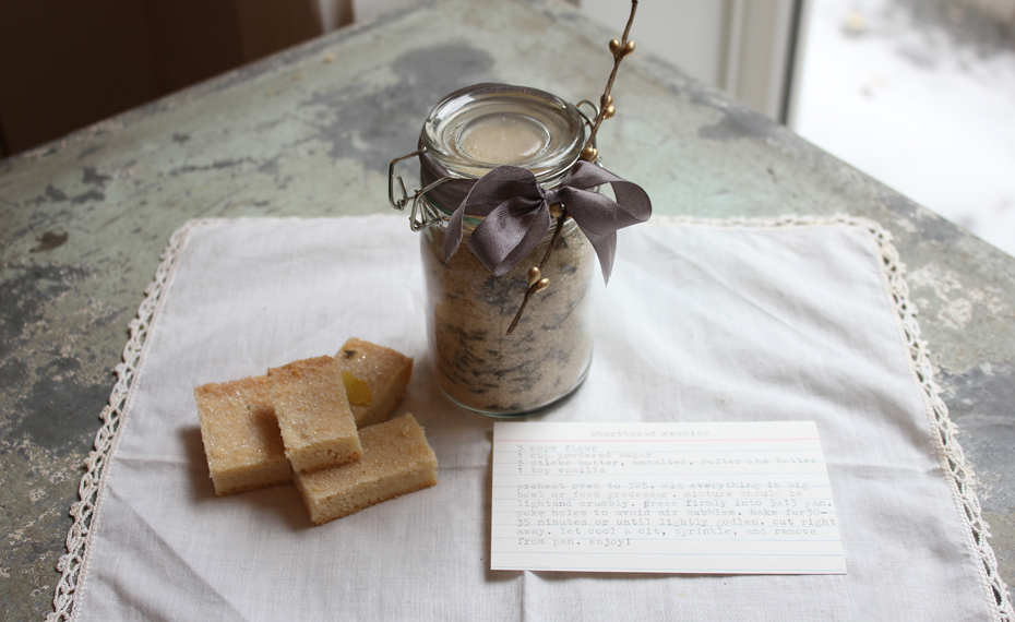 It’s so tempting to just curl up into bed with no honest plans to leave until Spring, but this year (like everything) I find myself wondering what I can do to make the cold days a little more bearable. But with a trip to Hawaii not in the works, and new snow boots waiting by the door to make their debut, I know that the only place the warmth is going to come from is a fire, the heat turned to full blast, or my own little shivering heart. Life in those precious weeks between Thanksgiving and Christmas seems to be fueled by a frenzy of glitter and goodwill. People love to mumble about trimming trees and baking cookies and wrapping gifts for other people, but I have to believe that it’s part of the Christmas cheer equation. Hide behind your Grinch face if you must, but I know that tasting the first homemade cookie made you smile, especially if it was mom’s recipe, or maybe something new you came up with yourself. And there’s a reason that the tree looks a little more special when you go chop it down yourself, or when it’s hung with ornaments that each have a little story to tell. The more love you put in, the more love you get out. And that simple equation is the only thing that’s going to keep us warm for the next few months.