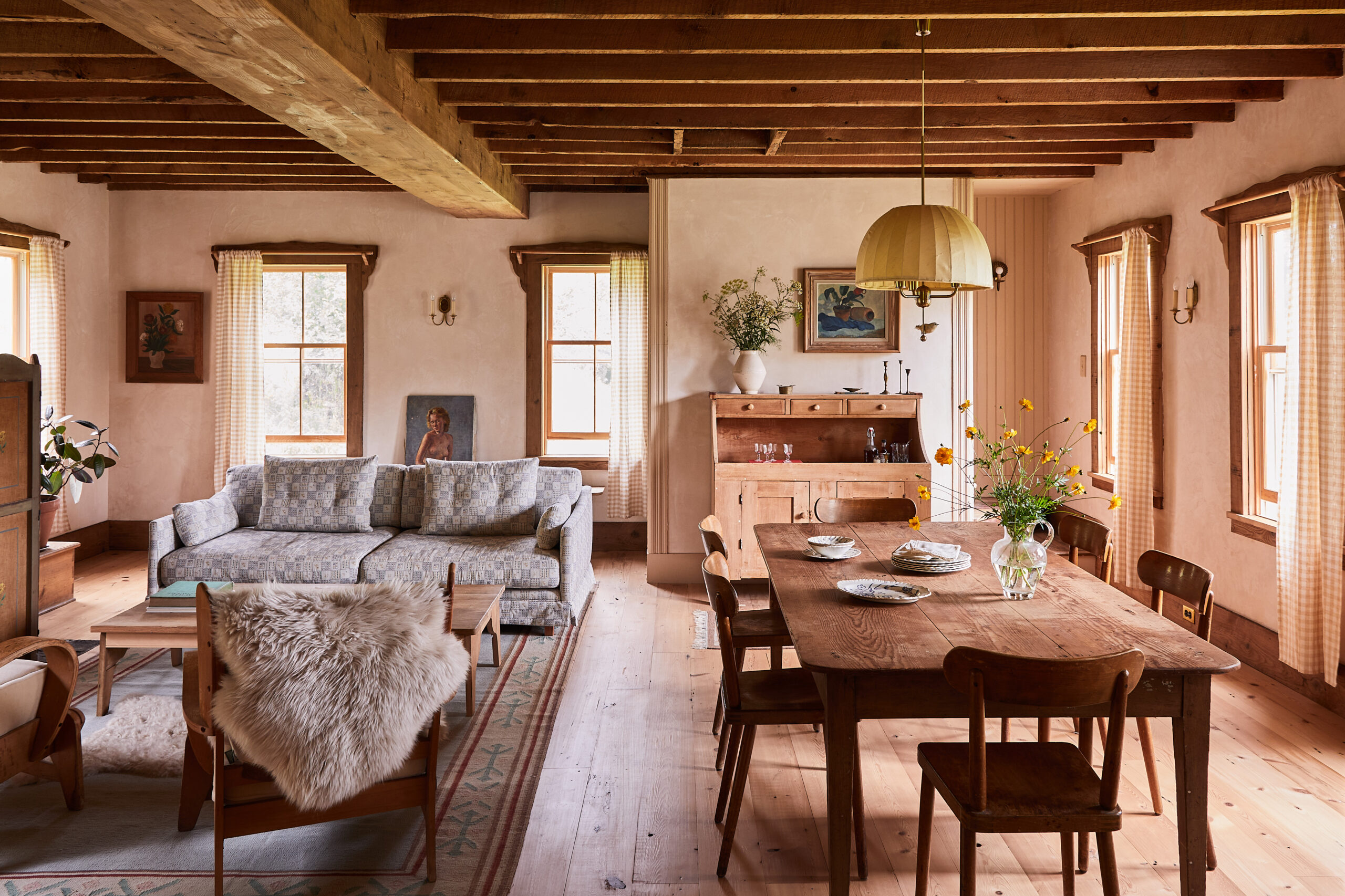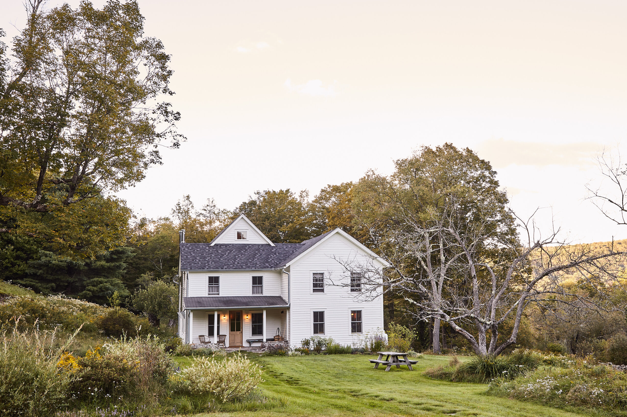 A late-18th-century farmhouse tucked away in 167 acres of fields and forest, complete with a barn, pool, pond, and tennis court. Over its many years the house has seen plenty of renovations and, we can only imagine, has lived just as many lives. Its most recent iteration featured a rainbow’s array of wall colors and strange furniture choices. It was immediately clear that all that needed to go, and that we’d basically need to start from scratch, while keeping just a few old details like the wide-plank floors and rich chestnut paneling.