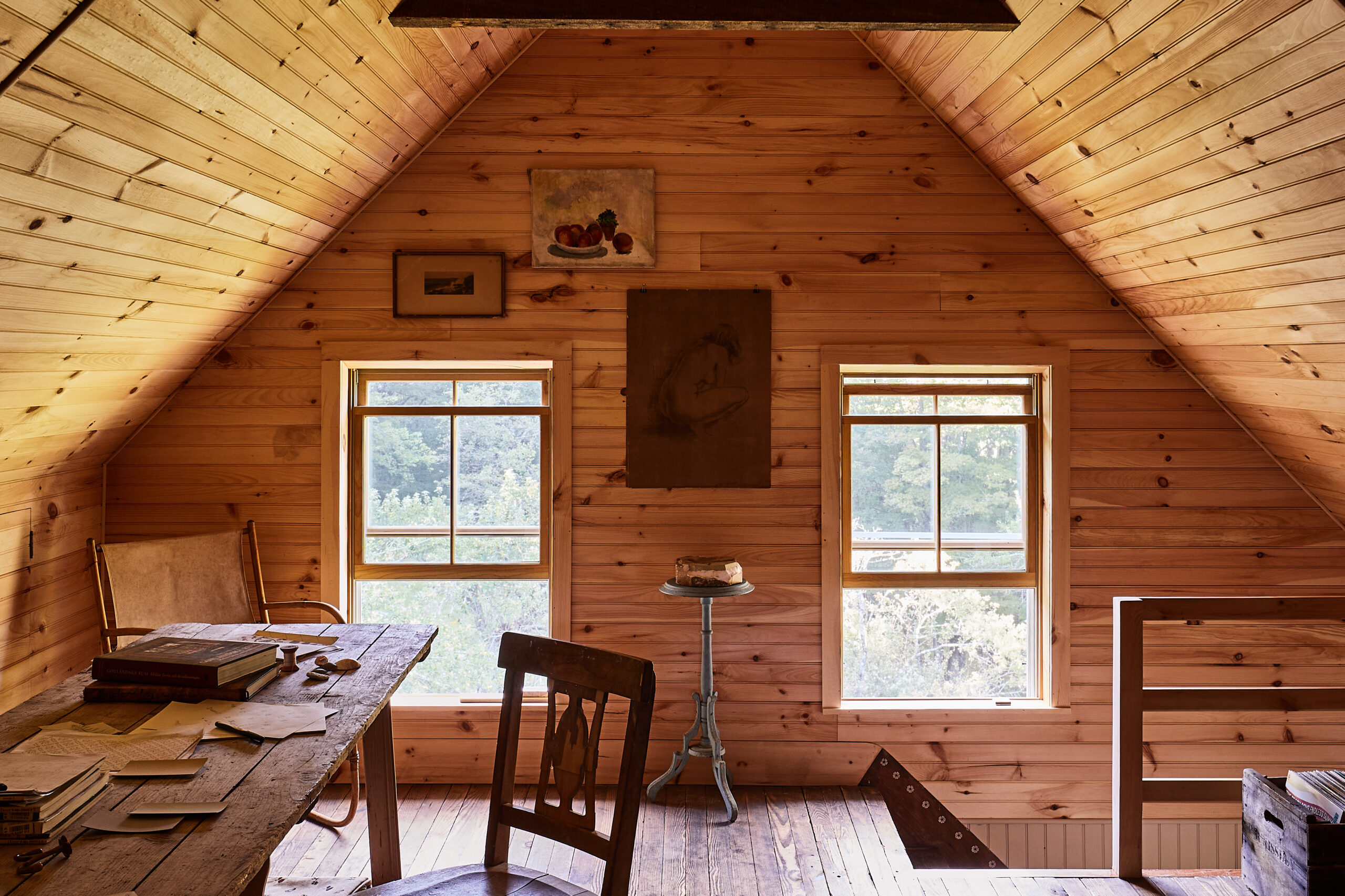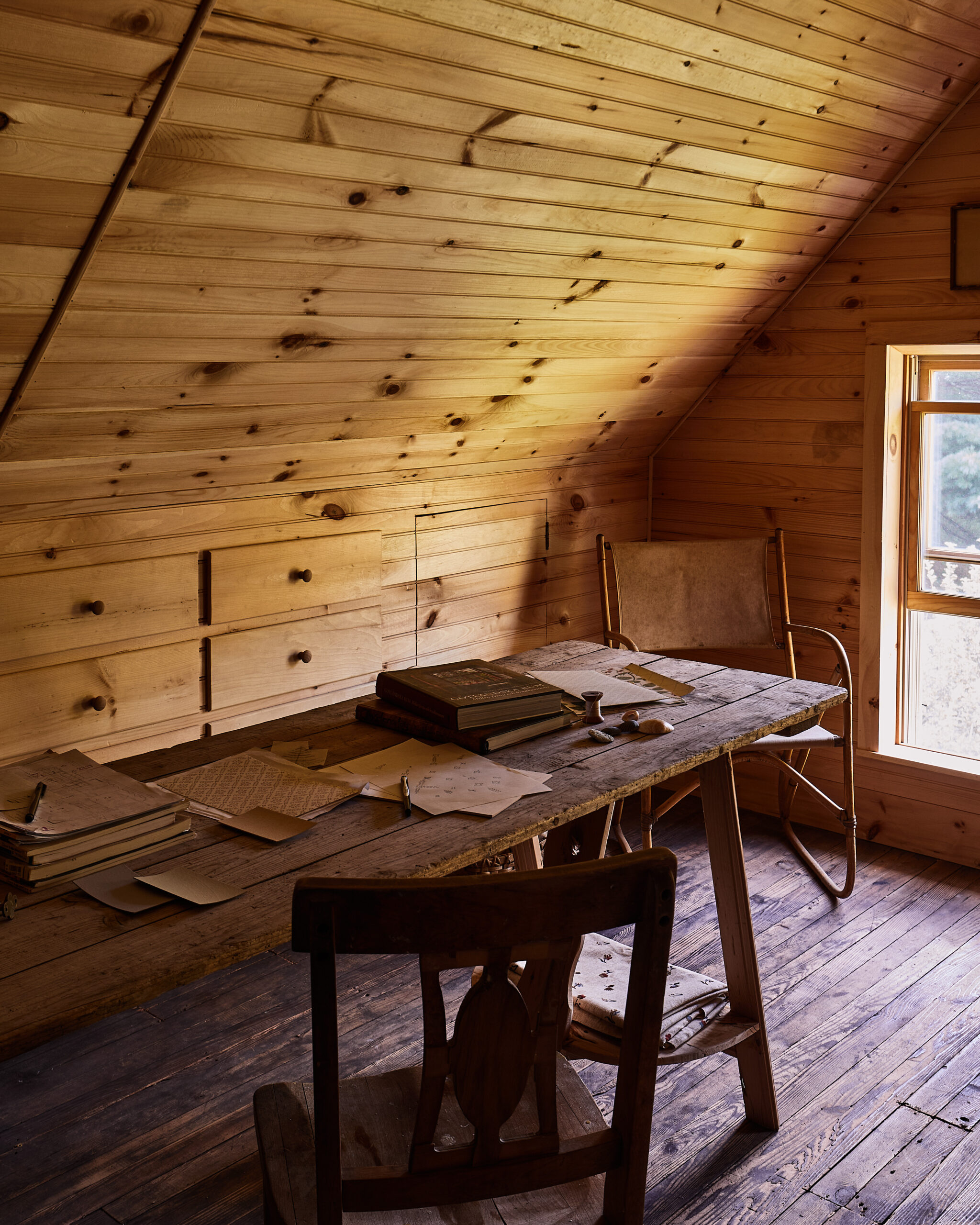 A little spot just over a little hill from the Magic Egg farmhouse. The guest house was filled with spiders and piles (and piles) of books when we got there, but it was easy to see the promise of this space. We let the original floors and wood beams steer the style, and kept things simple and light. Textured linens, white plaster, brass accents, some hanging sage from the garden, and of course, some built in bunk beds. It’s the perfect sized weekend getaway.