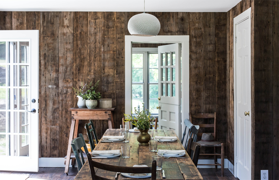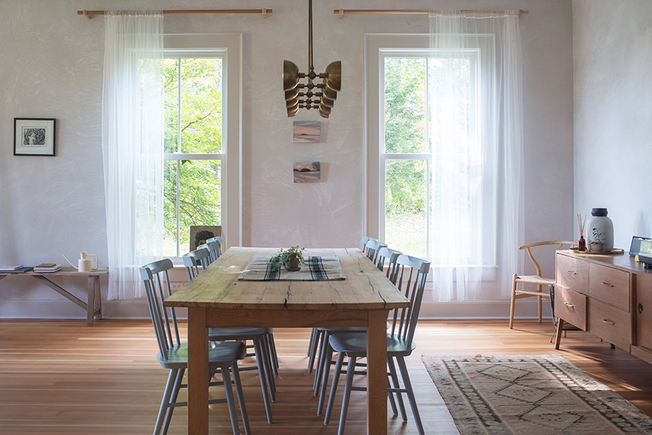 A late-18th-century farmhouse tucked away in 167 acres of fields and forest, complete with a barn, pool, pond, and tennis court. Over its many years the house has seen plenty of renovations and, we can only imagine, has lived just as many lives. Its most recent iteration featured a rainbow’s array of wall colors and strange furniture choices. It was immediately clear that all that needed to go, and that we’d basically need to start from scratch, while keeping just a few old details like the wide-plank floors and rich chestnut paneling.