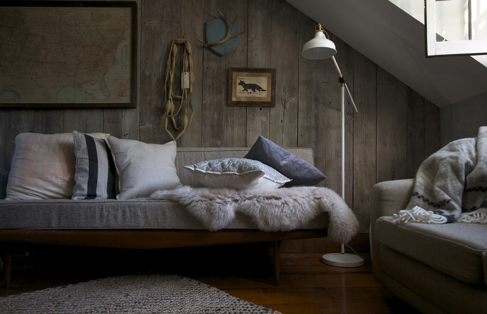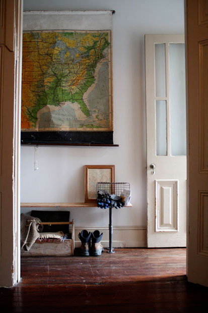 A true labor of love. Percy bought this house way back in the pre-Tara days of 2009 and slowly started about renovating it all by himself. The previous owner had neglected a nasty roof leak in the back left corner for so long that the kitchen cabinets two floors below were rotted out. He had roofers scheduled to come the day after closing, so right after he signed all the paperwork, he and his dad headed over and tore up the dilapidated old roof deck. Then he set about gutting the kitchen, tearing up a ton of wall-to-wall carpeting (turns out the floors underneath had been painted over several times), refinishing the floors, and redoing the kitchen. He added a bathroom and plugged away at the other rooms one by one. Paneling the living room (with reclaimed base cap molding from an abandoned school in North Philly) was the most difficult by far, but it also paid off the most. Then it was finally time to start furnishing and decorating. And Tara came along at just the right time! They hit a ton of flea markets together and she worked her magic, whipping everything into shape and photographing it all.