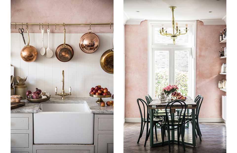 In a few short whirlwind weeks, we managed to give this breezy and bright flat in London a much needed facelift. The pink plaster obviously steals the show here, but you still can’t miss the gorgeous vintage pieces we found by scouring secondhand shops all over London and the south coast. We also built open pantry shelves out of old scaffolding planks, new leaves for the kitchen table, a new kitchen island from half a slab of marble and some reclaimed cheese boards, the list goes on.