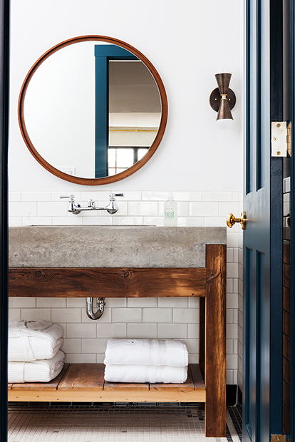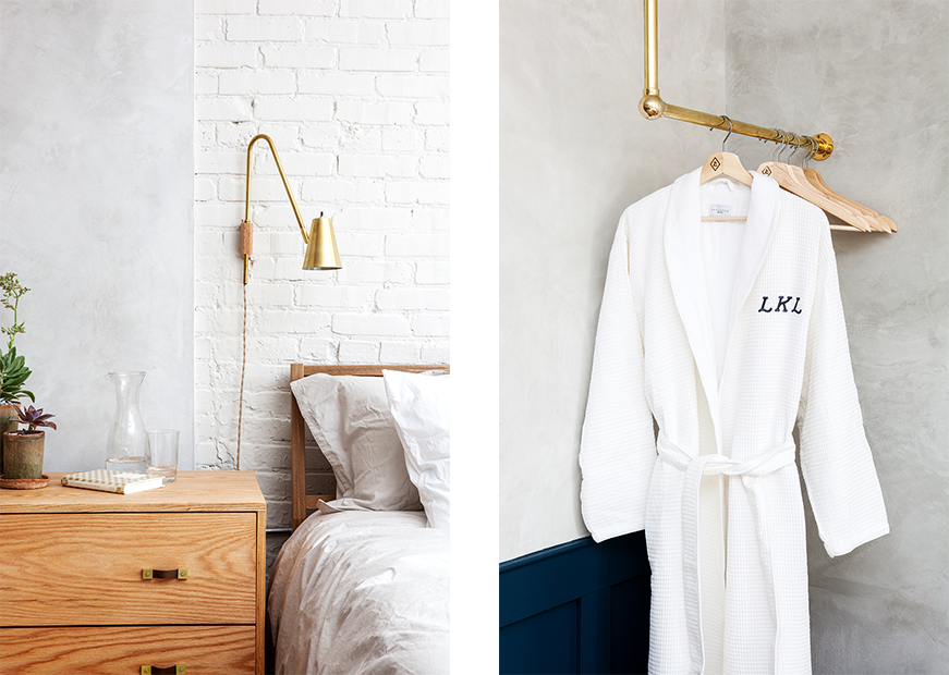 Our first crack at a hotel, Lokal has six unique one- and two-bedroom units in a gorgeous 19th-century brick building, formerly home to a printer in Old City, Philadelphia. We got involved in the project way back before the previous owners had even vacated, and got to watch as everything was cleared out, gutted, and then built back up. We consulted on floor plans, selected all finishes and other design elements, hand-assembled the bathroom floor tile mosaics, plastered all the walls, and sourced and styled everything you see here.